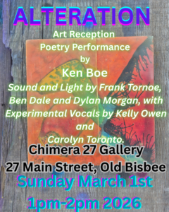 Thursday and Friday November 7th and 8th. 6:30-7:30 each night, Sidepony Music Festival weekend Bisbee, AZ. Saturday the 9th I’ll be featured poet at Miami Art Works for the best open mic in Arizona. 509 Sullivan Miami AZ. at Miami Art Works for the best open mic in Arizona.